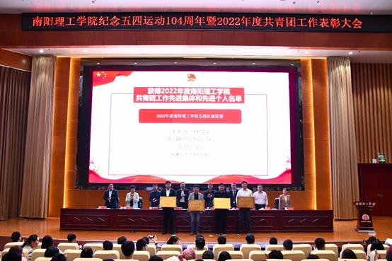 此次表彰中,我院荣获“2022年度南阳理工学院五四红旗团委”、“南阳理工学院2022年度社会实践优秀组织单位”、“第十届社团文化艺术节优秀组织单位”、“南阳理工学院2022年模拟政协提案征集活动优秀组织单位”集体荣誉。我院团委副书记王涵老师获“2022年度南阳理工学院优秀共青团干部”称号,熊语欣和王永微两名同学获“2022年度南阳理工学院五四青年标兵”称号。熊语欣同学作为获奖学生代表发言。