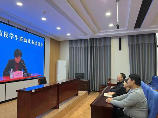 本网讯(学生记者/张玘)2022年10月28日上午,全国资助管理中心采用线上直播的方式举办了2022年全国资助工作培训会,全国学生资助管理中心副主任陈淑梅出席会议并讲话,全国学生资助管理中心高教资助处副处长袁荣主持会议。教师教育学院党委副书记陈同勉及全体辅导员在22教师苑大讲堂观看本次线上培训会。