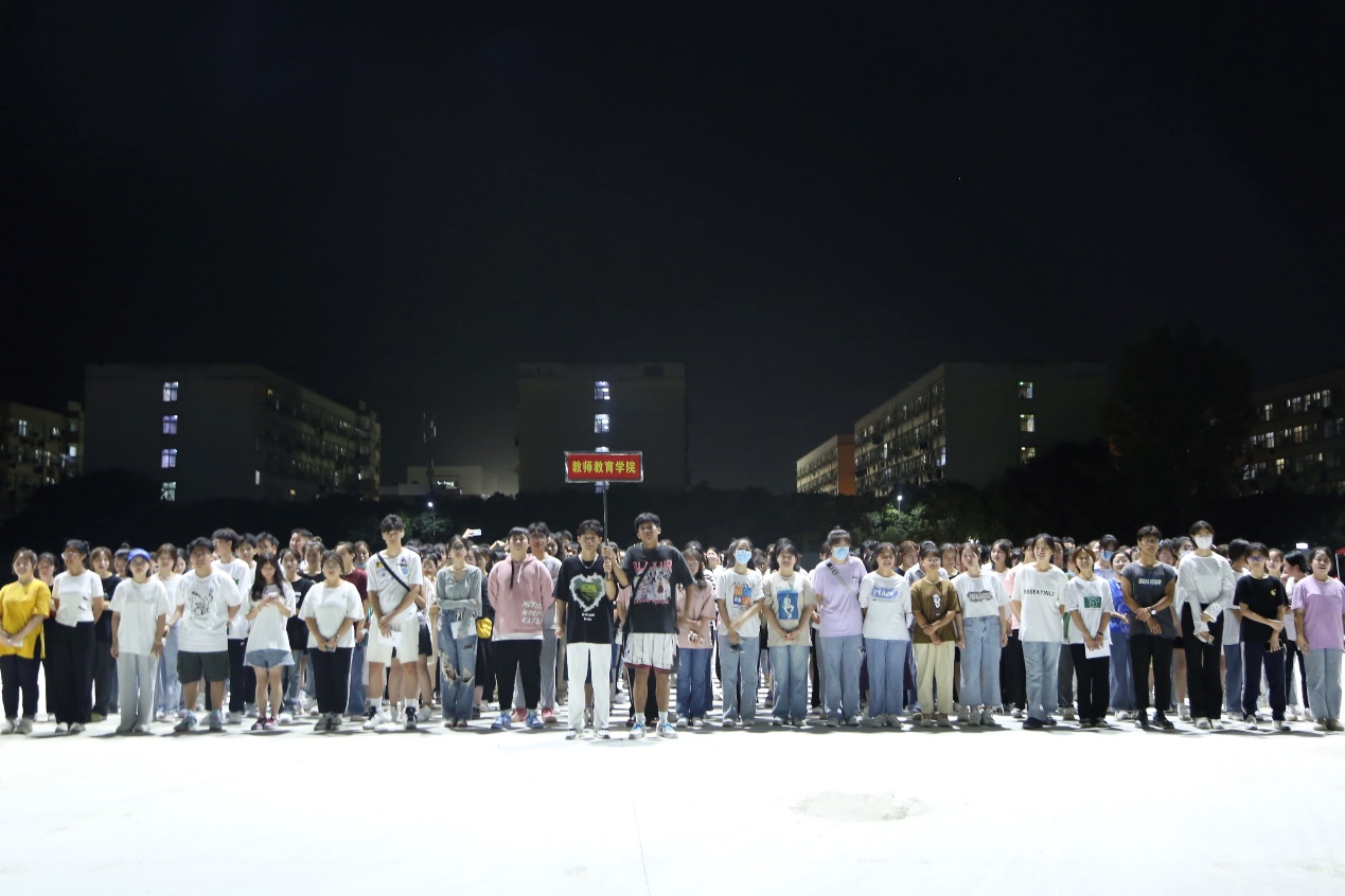 晚上8点,夜幕降临,全院大一新生分批集合完毕,浩浩荡荡的队伍彰显着青春活力,大家积极热身,踢腿、拉伸样样不落,全员蓄势待发。