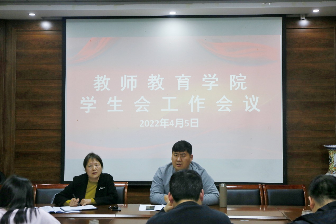 本网讯(学生记者/欧阳颖)为有效推进教师教育学院学生组织工作的开展。2022年4月5日下午,学院召开了2022年春期第二次学生干部会议,学院党委副书记陈同勉、全体辅导员出席会议,学生会、分团委、自律委及学生资助服务站的学生干部参加会议,会议由学院团委副书记王涵主持。