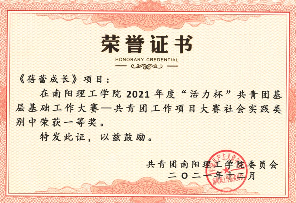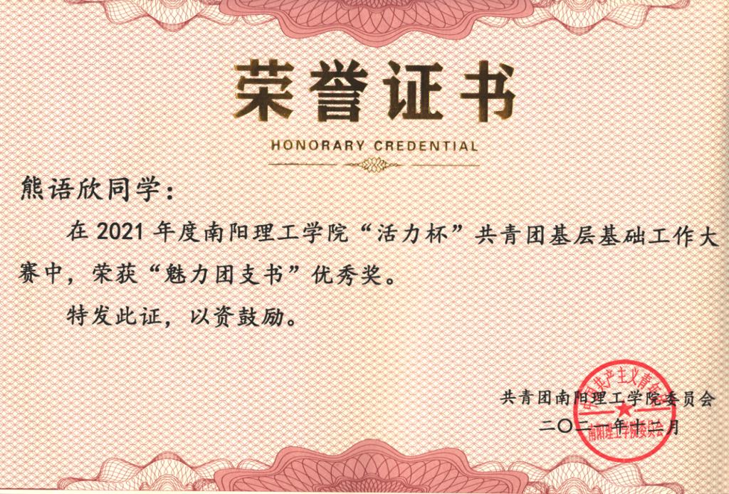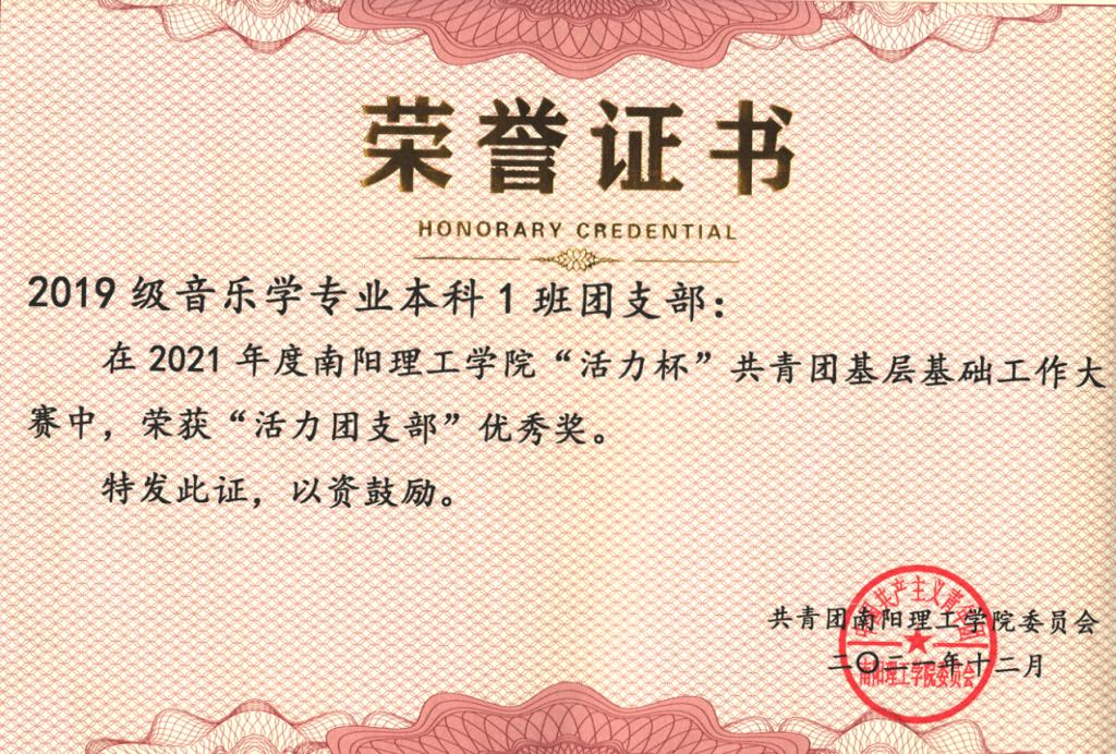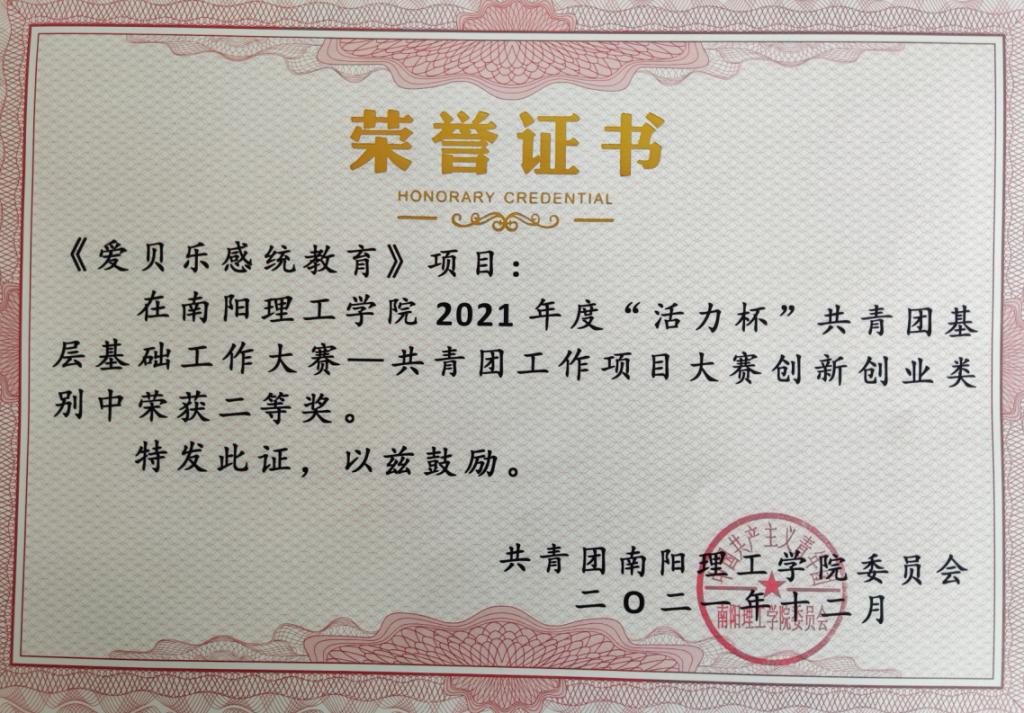 我院《蓓蕾成长》项目在共青团工作项目大赛社会实践类别中荣获一等奖;《爱贝乐感统教育》项目在共青团工作项目大赛创新创业类别中荣获二等奖;《红歌嘹亮,青春向党》项目在共青团工作项目大赛校园文化类别中荣获二等奖;《高质量党建工作引领基层党组织建设》项目在共青团工作项目大赛基层组织建设类别中荣获三等奖;《“十个一”红色文化育人工程》项目在共青团工作项目大赛特色活动类别中荣获三等奖。阙宏宇同学在共青团基层团干部“微团课”大赛中荣获“优秀奖”。熊语欣同学荣获“魅力团支书”优秀奖;2019级音乐学专业本科1班团支部荣获“活力团支部”优秀奖。