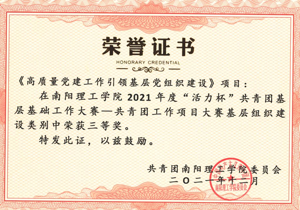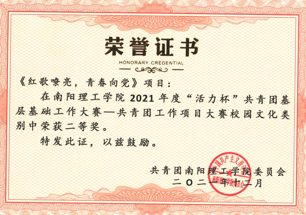 本次大赛共设有共青团工作项目大赛、共青团基层团干部“微团课”大赛、“魅力团支书活力团支部”评选展示活动三项主题赛事。我院在共青团工作项目大赛中荣获1个一等奖,2个二等奖,2个三等奖;在共青团基层团干部“微团课”大赛中荣获优秀奖;在“魅力团支书活力团支部”评选展示活动中荣获优秀奖。