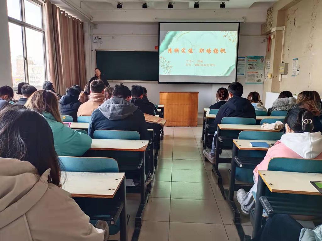 本网讯(学生记者/鲁佳涵)为培养学生正确的职业观、合理的就业观,营造积极向上的良好学风,12月17日我院在4号教学楼415教室举办了一场以“清晰定位 职场扬帆”为主题的创新创业指导讲座。本次讲座由学院创新创业指导中心副主任贺菊作为主讲老师。