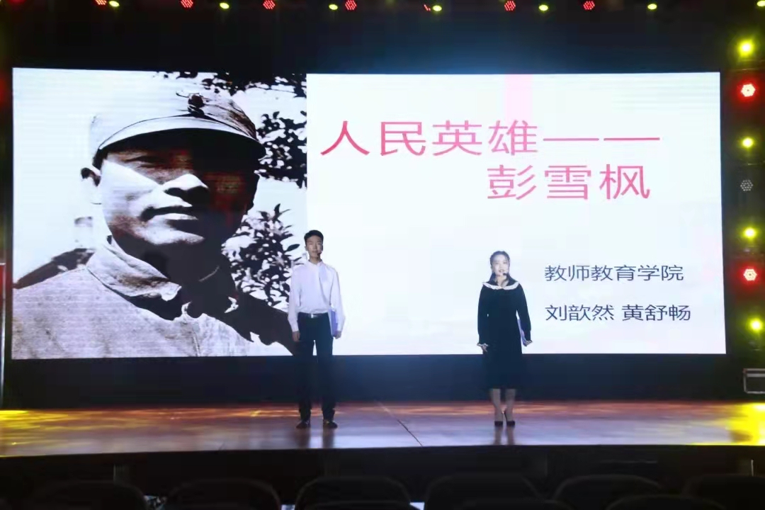 第二支队伍以“人民英雄——彭雪枫”为题,由小小宿迁讲到千里延安,讲解者们默契配合,把革命将领彭雪枫的英雄事迹与中原河山之战联系起来,洒脱的将领之风融入话语,他们把新时代奋斗精神、奉献精神铭刻在心,讲出了军民厚意、亮出了民族底气。