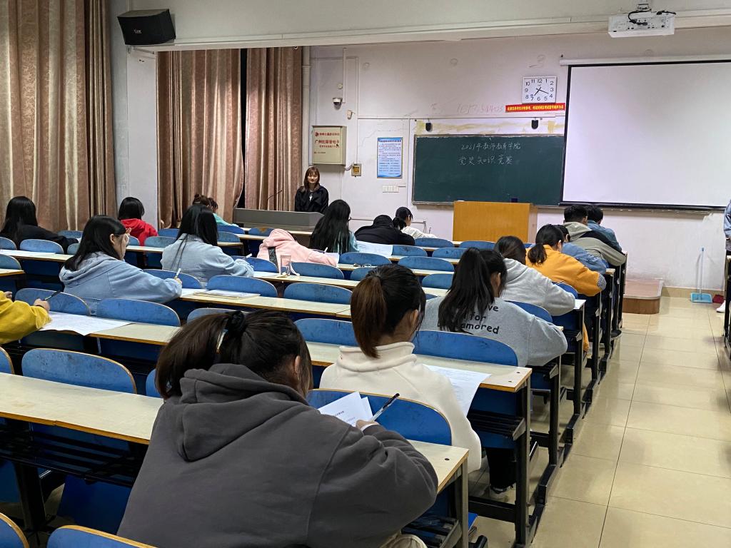 本网讯(学生记者/张文娜)为深入学习习近平总书记在庆祝中国共产党成立100周年大会上的重要讲话精神,全面提高我院学生的政治理论素养,2021年10月24日,教师教育学院特举行党史知识竞赛活动,2021级全体新生和第47期、48期入党积极分子积极参与。