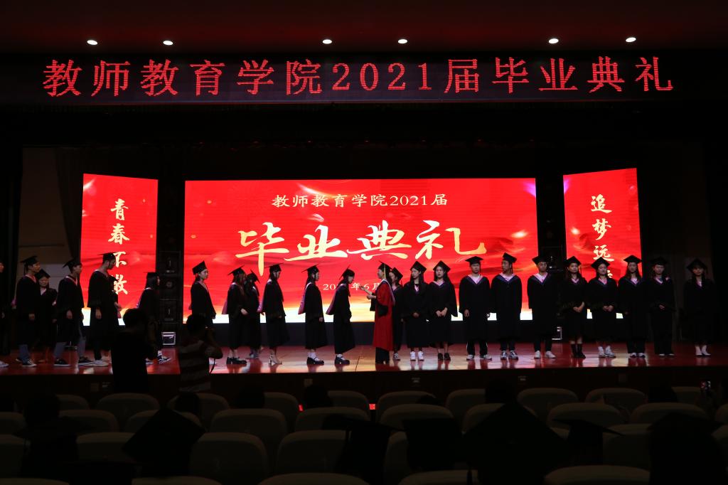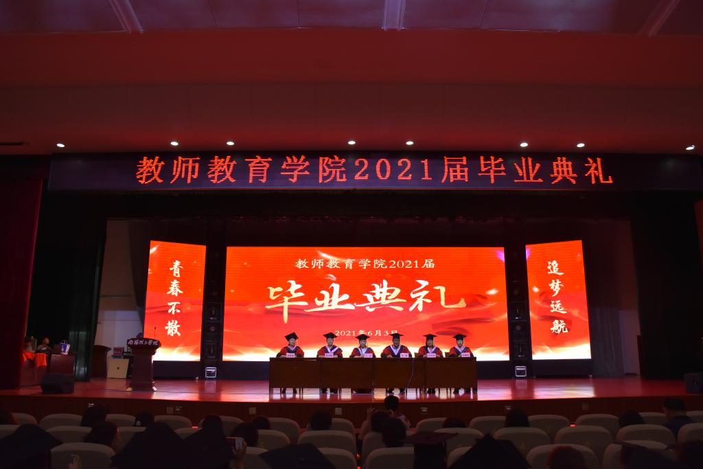 本网讯(特约记者/何雷雨 学生记者/孙知新 刘为宇)青春不散,追梦远航。6月3日,教师教育学院为2021届毕业生举办毕业典礼。学院领导班子、学术委员会委员、教师代表及部分学生家长出席典礼,全体在校学生参加活动。党委书记冯建主持本次典礼。