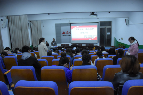 活动初始,主持人带领同学们观看了有关诚信考试的视频,通过视频的方式向大家讲解了“诚信”的重要性,并告诉同学们作为一名当代的大学生在考试中我们要做到诚信考试、诚信做人。