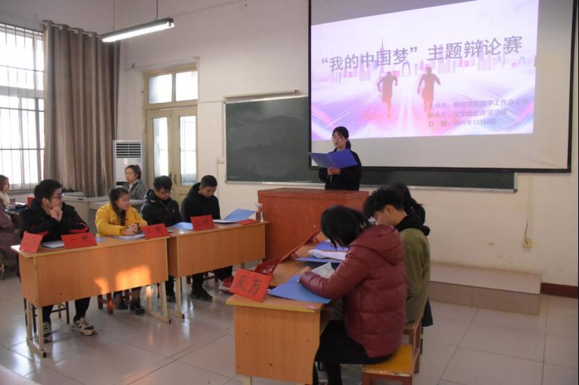 为提高当代大学生爱国意识,引导同学们为实现祖国富强、民族振兴的伟大中国梦努力学习、不懈奋斗,12月5日到12月7日,师范学院在教学楼公共教室415举办了“我的中国梦”主题辩论赛复赛,本次活动由学生会纪律学习部承办,18、19级各班参赛代表及观众共同参与。