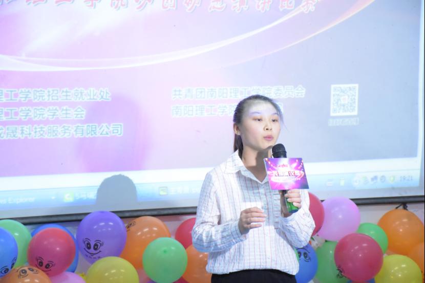 为强化和培养学生的创新、创业意识,锻炼学生们的演讲能力和口头表达能力。南阳理工师范学院于11月7日晚在阶梯教室举办了第三届我是演说家师范学院分站赛。