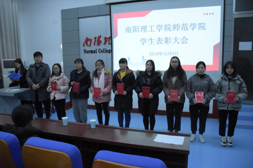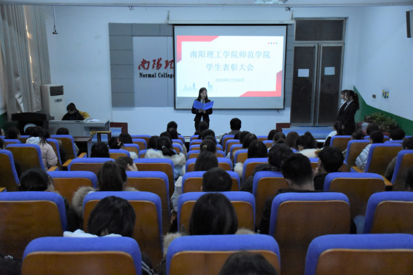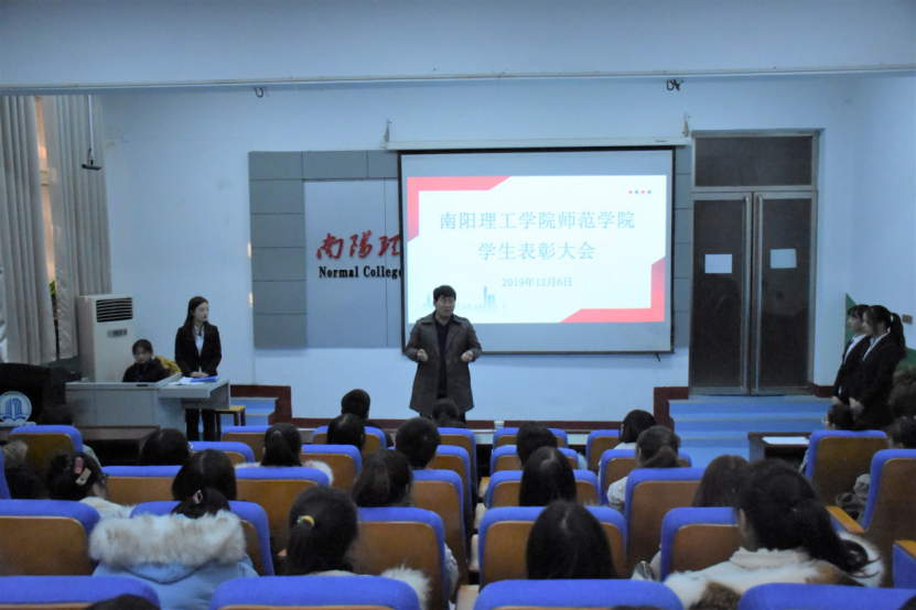 为了表彰我院同学在上一学年工作、学习、比赛等各方面取得的优异成绩、做出的突出贡献,师范学院在12月6日于教学楼115教室举行了师范学院表彰大会。本次活动由秘书部和办公室承办,出席本次大会的领导有团学办公室赵尊老师、王涵老师、何雷雨老师。18、19级部分同学参加本次活动。