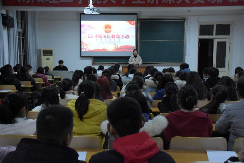 为了增强我院学生的宪法意识、弘扬宪法精神、加强宪法实施、推动校园形成崇尚宪法、遵守宪法、学习宪法、维护宪法的浓厚氛围。12月4日晚,由师范学院学生会宣传部承办的12.4宪法日教育活动在教学楼315教室举行。19级部分同学参加此次活动。
