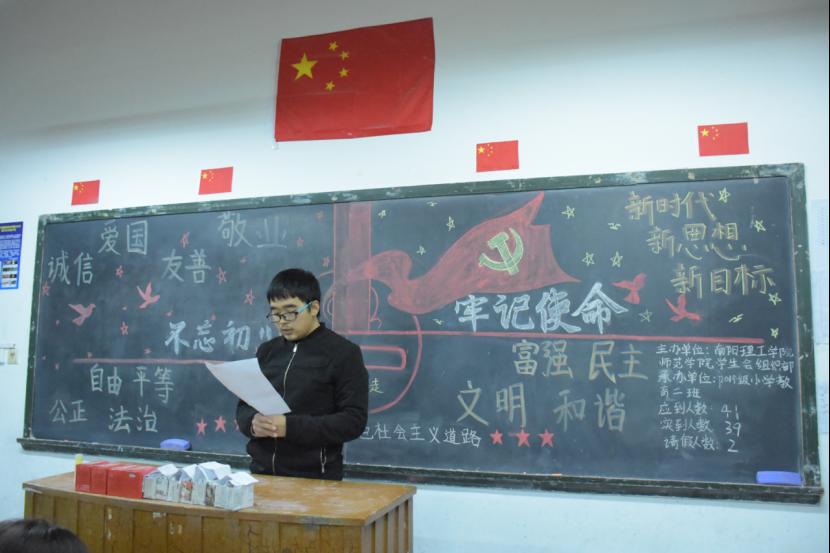 党是中国特色社会主义的领导核心。为引导我院学生爱党忠党,做好青年大学生精神教育培育工作,师范学院于2019年11月24日在教学楼各教室举办“不忘初心、牢记使命”主题班会,本次活动由师范学院学生会组织部主办,19级全体学生共同参与。