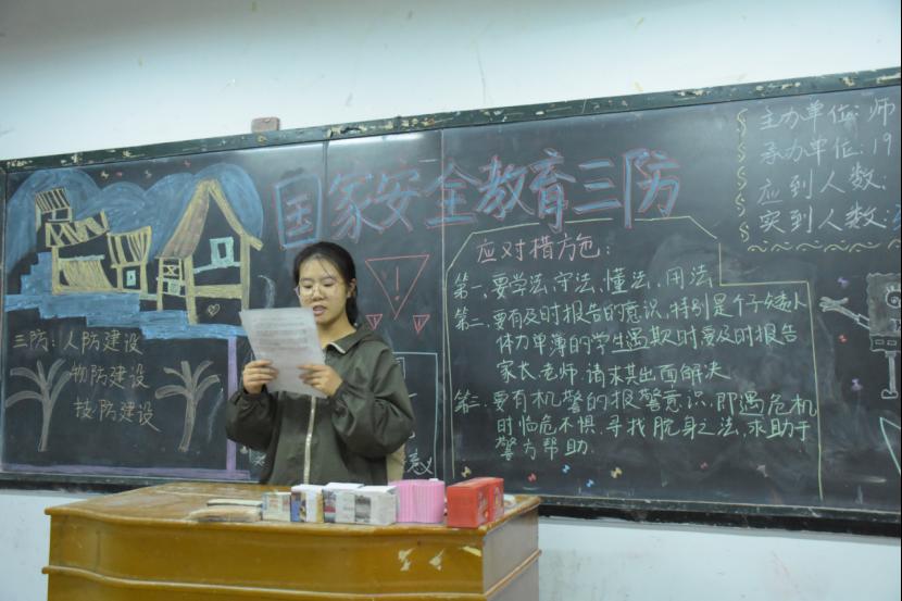 为了让我院学生了解更多关于国家安全教育的知识,丰富其对国家三防的认知,10月24日晚,由师范学院学生会秘书部承办的“国家安全教育三防”主题班会在19级各班教室举行,19级各班同学积极参与。