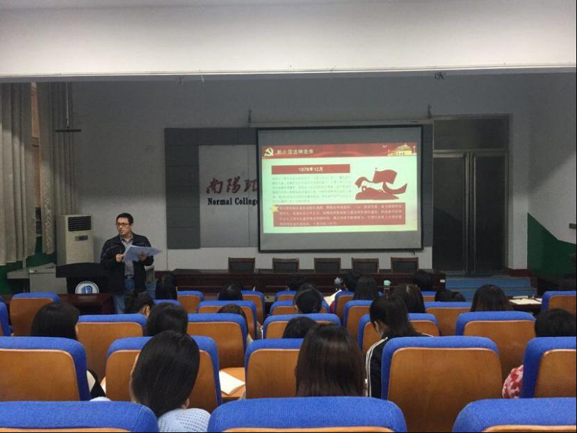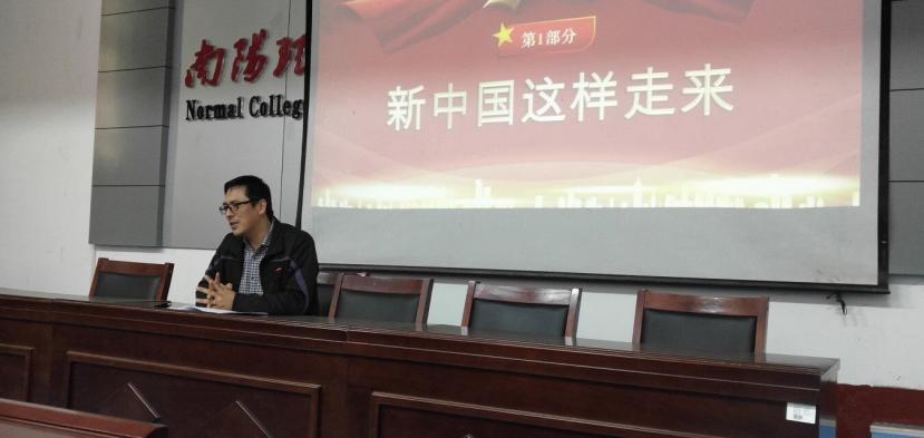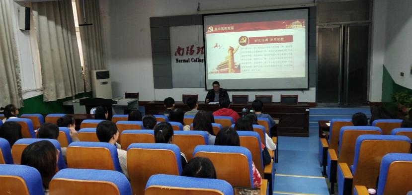 2019年10月10日晚,师范学院青马学堂第二讲于教学楼阶梯教室举行。师范学院党委副书记李勇书记以“我和我的祖国”为主题向青年学子传授相关理论知识,师范学院青马学堂全体学员参加。