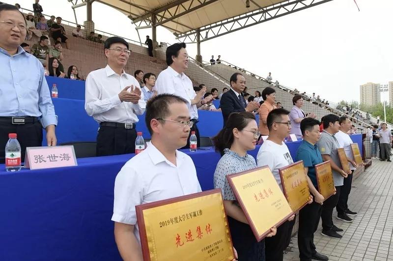 强国有我,祖国万岁。9月23日下午,2019级新生开学典礼暨军训汇报演出在南阳理工学院校本部东南校区运动场举行。中国人民解放军某部参谋长李勇,南阳理工学院党委书记邢勇,校长刘荣英,校党委副书记秦鹏鸣,副校长张伟、张铟、张世海,纪委书记许建辉,校工会主席周礼春出席仪式。校内各单位主要负责同志,各教学院副书记、教师代表、团学办主任、分团委书记、2019级新生辅导员以及2019级全体新生参加仪式。