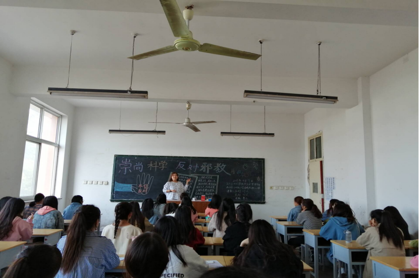 4月7日,18级的同学开展了以“崇尚科学,反对非法宗教”的宗教教育主题班会,各班主讲人先是采取问答形式向大家介绍了邪教并讲述了其危害,接着呼吁全体同学崇尚科学勿信邪教,同学们在此过程中积极踊跃,气氛热烈。