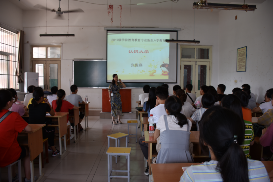 为了让19级新生充分认识和了解师范学院,了解大学生活和学习的特点,帮助学生认识自我和树立信心,我院于9月9号下午在教学楼415进行新生入学教育之学前教育专业讲座。本次讲座由学前教育教研室主任张俊燕副教授担任主讲人,19级学前教育专业全体同学参加了此次讲座。