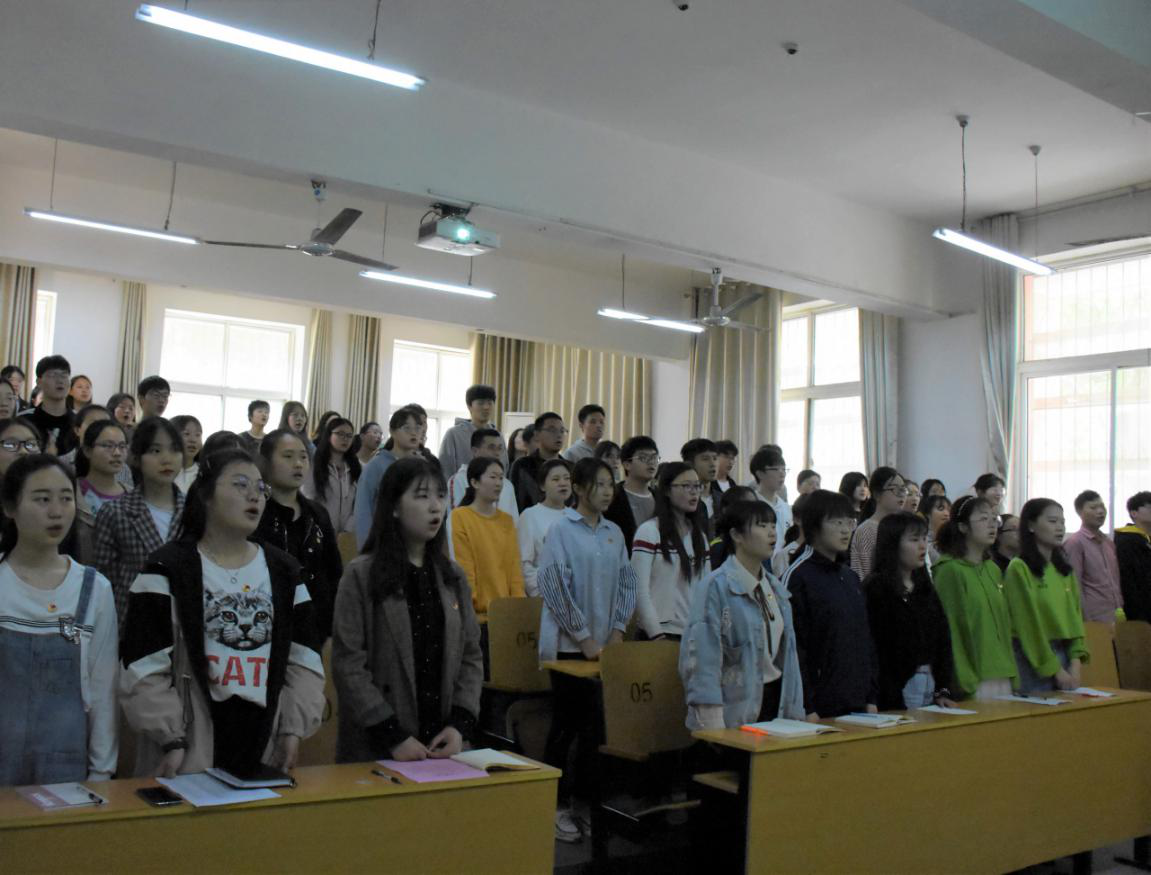 中国共青团团歌前奏响起,全体师生起立,合唱共青团团歌;