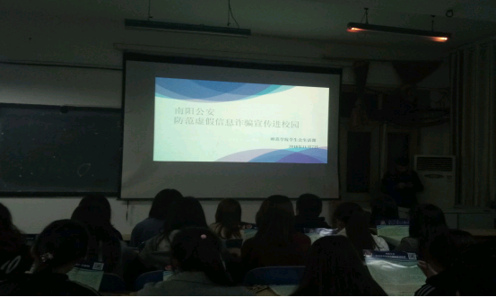 2018年11月20日,组织同学们在公共教室进行宣讲,同学们都很积极主动的去看《南阳公安防范虚假信息诈骗宣传进校园》单页内容,并且对此话题进行了热烈的讨论。