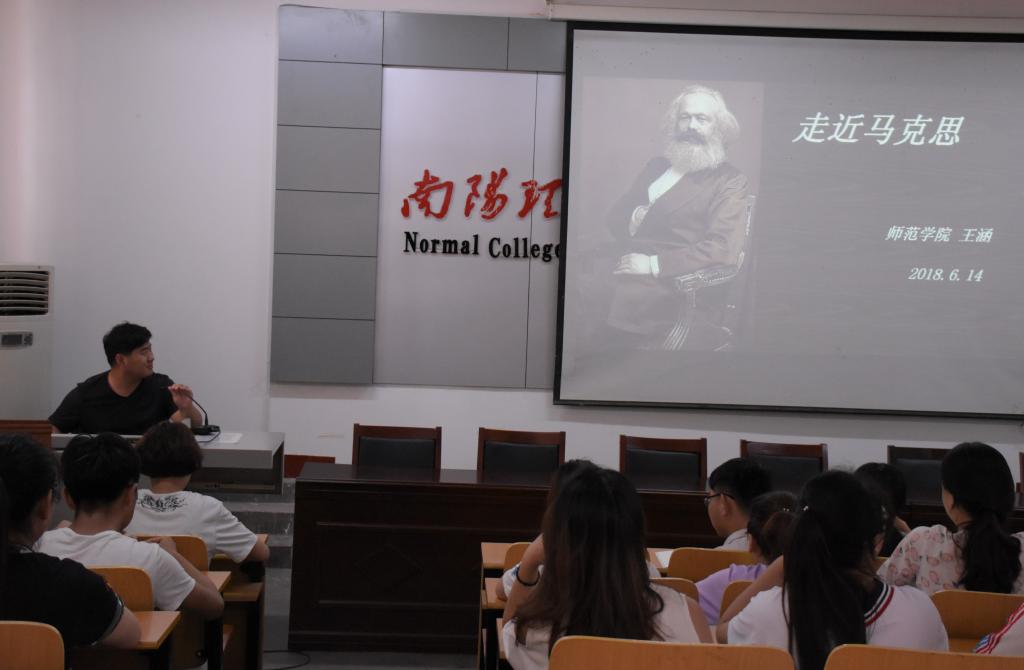 马克思主义对中国的发展巨大,课堂中王涵老师向大家讲述了马克思的生平事迹,马克思主义的主要内容以及马克思主义的重要意义。在场的一百多位同学认真聆听,课堂效果良好。