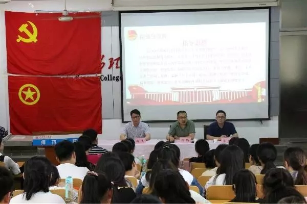 本网讯(通讯员/张惠莹 特约记者/陈飞 ) 为深入学习习近平新时代中国特色社会主义思想,深入实施青年马克思主义者培养工程。5月15日,师范学院成功举办了“青马学堂”成立仪式暨第一期青马学堂开班典礼。师范学院党委书记段焰、党委副书记李勇、全体辅导员及120余名青马骨干参加了该仪式。开班仪式由团学办公室主任陈飞主持。