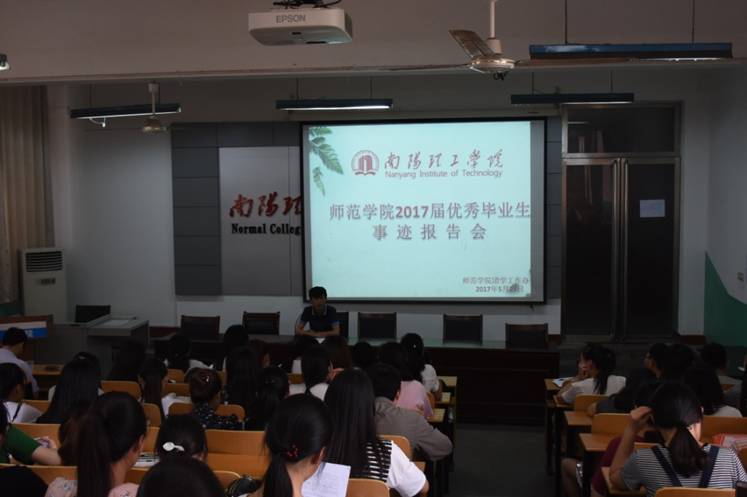 师范学院于5月23日在阶梯教室成功举办了以“感恩、自强、责任”为主题的优秀毕业生事迹报告会。师范学院党委副书记李勇、团学办公室主任陈飞出席报告会并作重要讲话,各班代表到场聆听了平硕磊、王遥光、郭晓宇、李同心、刘静五位同学所作的报告。