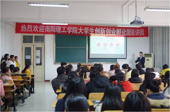 11月29日下午,师范学院创新创业大讲堂座无虚席,160余名怀有创业梦想的师范学子在这里倾听南阳理工学院大学生创新创业孵化园宣讲团的报告。此次活动由大学生创新创业孵化园、南阳创业学院、师范学院联合推出。此次报告会的主题是“赢在起点共创未来——师兄带你来创业”,由成功入驻我校大学生创新创业孵化园且经营有方的三位优秀代表,与同学们一起分享他们从艰难起步到业绩迅猛飙升的创业经历及心路历程。师范学院党委副书记李勇、招生就业处大学生创新创业孵化园团队指导老师郭勇、南阳创业学院闫龙老师、师范学院大学生综合创新实训中心主任郭青参加了此次活动。