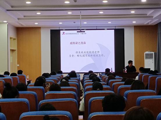 程涛就入驻学校创新创业孵化园项目与创新创业大赛为同学们进行了介绍,鼓励同学们提出创新想法并付诸行动,实现自己的创业梦想,为创新创业发展贡献个人力量。