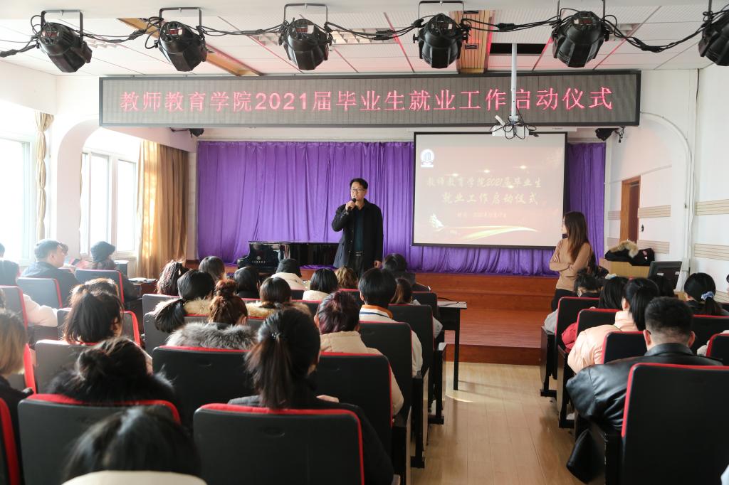 本网讯(学生记者/王宣惠)为了提升大学生的就业意识,教师教育学院于2020年12月20日在长江路和七一路校区同步举办了2021届毕业生就业工作启动仪式。教师教育学院党委书记冯建、副书记陈同勉及毕业班辅导员参与指导,部署推进学院2021届毕业生就业创业工作。