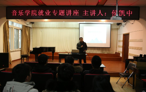 四、搭建平台,不断加强创新创业培训与指导。我院邀请晓雯音乐董事长叶军、宁波多乐米音乐文化传播公司市场运营部负责人何海波、2014届创业优秀校友马东亮为在校生举办大学生就业知识讲座。截至目前,邀请校企合作单位负责人来我院进行就业讲座已成功举办4场次。