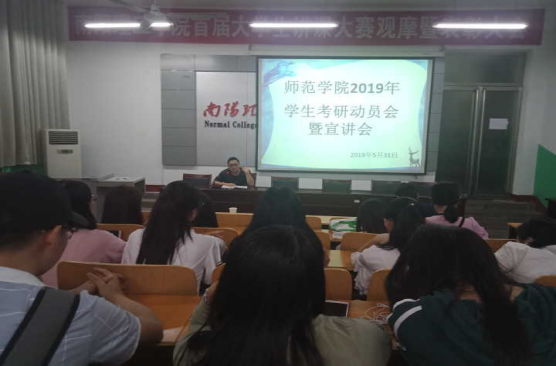 为了给师范学院学子提供一个学习考研经验的平台,激发同学们的学习热情和考研激情,我院于2019年5月31日16:00在阶梯教室举办了“师范学院2019年学生考研动员会暨宣讲会”。本次考研动员会我院特邀请了考研咨询师于彤老师、师范学院党委副书记李勇、团学工作办公室主任陈飞到场指导。