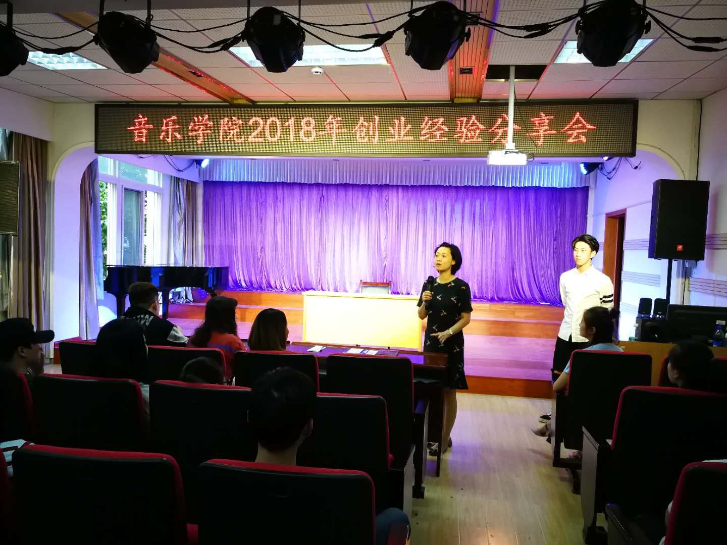 本网讯(通讯员/刘青) 为加强学生创新创业能力,传递创新创业精神,5月29日,音乐学院于207多媒体教室举行创业经验分享会。本次分享会邀请到三位有创业经验的音乐学子何健、熊鹏及张泽雨。分享会由我院大学生综合创新实训中心主任孔瑛主持,2016级、2017级部分同学与会。