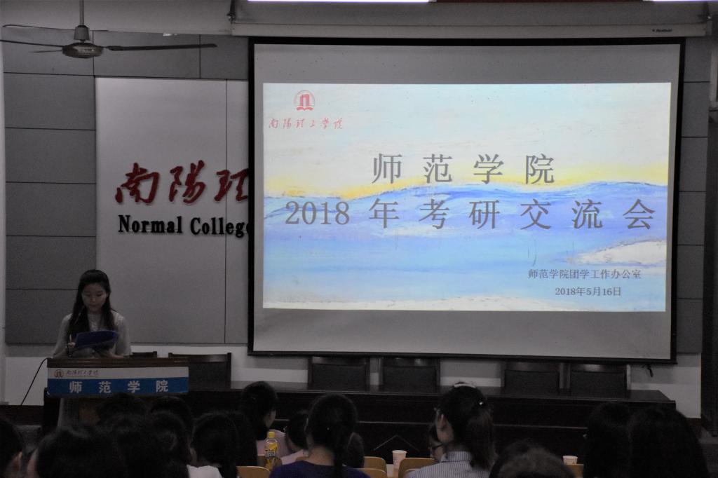 为了进一步提高我院学生的考研热情,明确考研目标,更好的了解考研知识,掌握相关考研技巧,5月16日晚,师范学院在公六教室举办了2018年考研经验交流会。团学工作办公室主任陈飞、全体辅导员和石才英等七位考研成功的优秀学生应邀参加本次会议,有考研意愿的百余名学生前来学习。