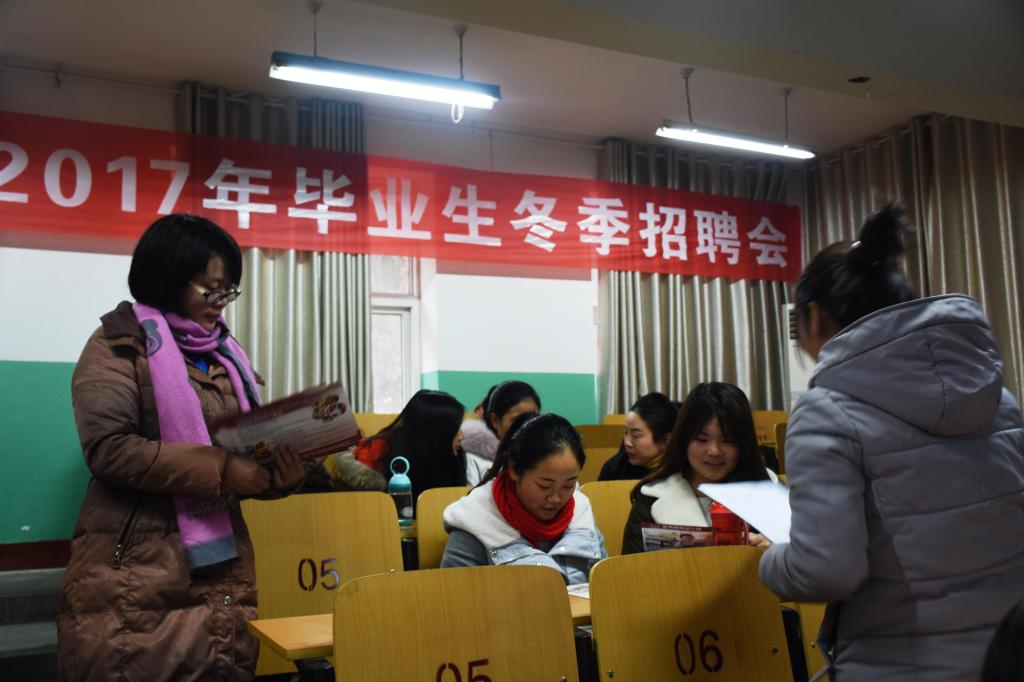 (本部讯/刘润芳)2017年12月14日,为使在校毕业生了解就业形势,南阳理工学院师范学院于公六教室举办了2017年毕业生冬季招聘会,本次活动由师范学院团学工作办公室主办,学生会秘书部承办。