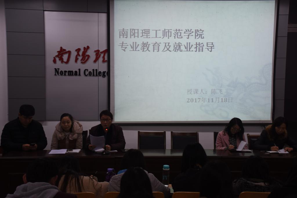2017年11月18日晚,师范学院团学工作办公室主任陈飞老师在公六教室做了关于专业教育及就业指导相关方面的讲座。