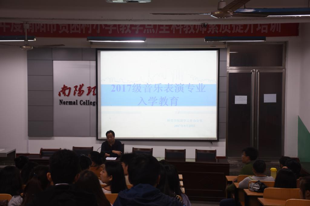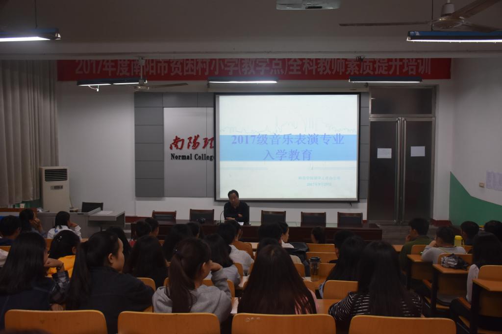 本网讯(学生记者/付丽丽 后素丽)9月25日,师范学院于阶梯教室开展音乐表演专业教育和就业教育讲座,此次讲座由音乐教室教研主任张洪亮主讲,17级音乐表演专业全体学生共同参与。
