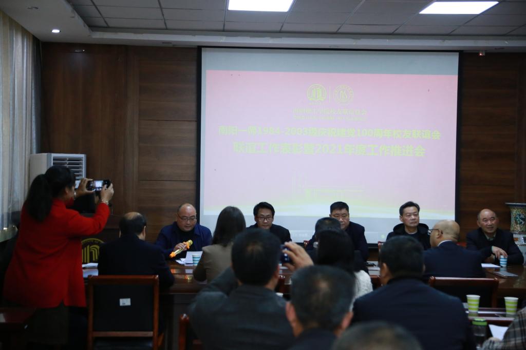 本网讯(特约记者/何雷雨 学生记者/叶冰倩)为推进我院校友联谊工作,教师教育学院(原南阳一师)1984-2003级庆祝建党100周年校友会联谊工作表彰大会于10月30日在南阳理工学院四教二楼会议室举行。我校招生就业处处长、校友联谊总会会长胡楠、学院党委书记冯建、校友会名誉会长魏厚文、丁心镜及20届校友代表欢聚一堂,共同见证广大校友和母校之间的深情厚谊。校友会副会长杨峰主持会议。