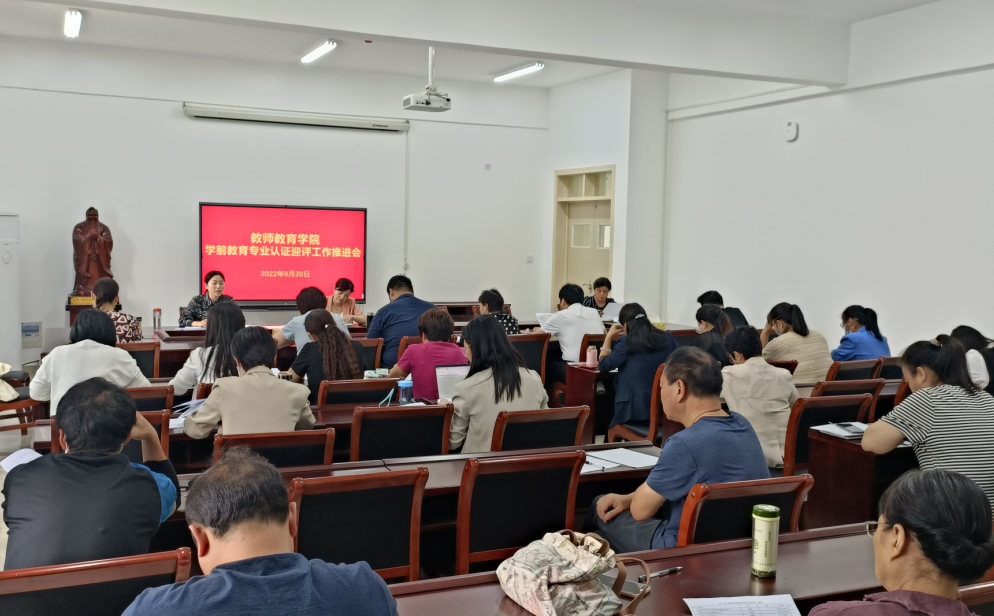 本网讯(学生记者/雒欣甜)为进一步推进学前教育专业认证工作,2022年9月20日,教师教育学院在22教会议室召开学前教育专业认证迎评工作推进会,学院领导班子及各工作小组相关老师参加会议。会议由院长王岩主持。