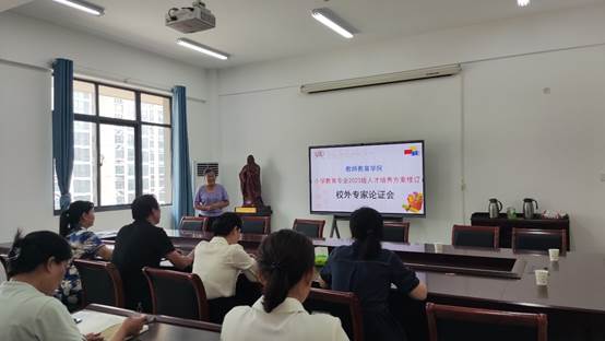 小学教育专业负责人王录梅就2023版人才培养方案修订的背景、过程及论证重点进行了汇报,各位专家、教师从专业发展、社会需求的角度发表了自己的意见和建议,进行了深入的探讨。